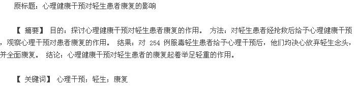 [ 4] 许赞霞,常卫波。服毒自杀患者的心理护理[ J] .中国社区医师( 医学专业),2011,26( 25):277.